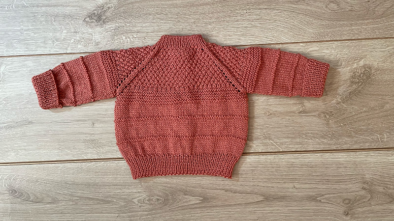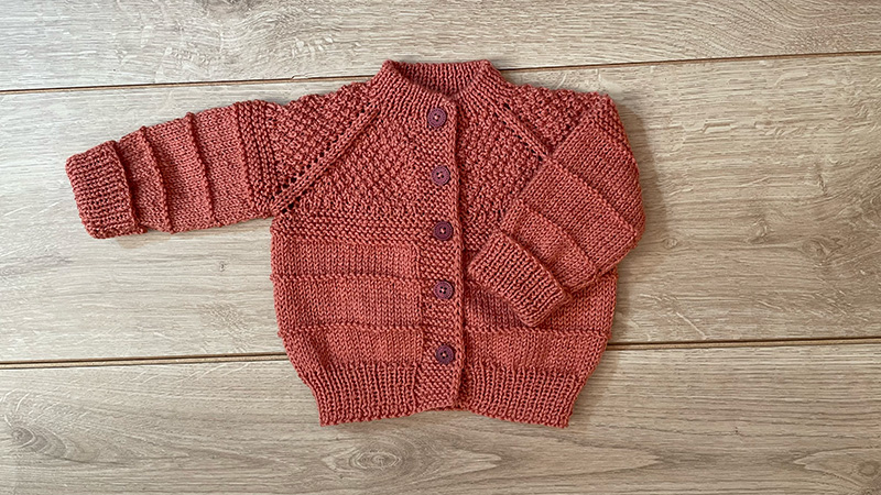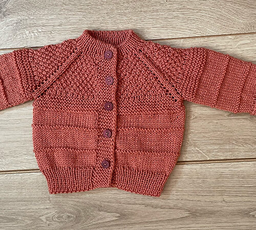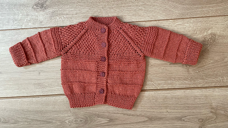 -La explicación detallada y completa de una chaqueta básica fácil empezada por el cuello, con un borde elegante y una puntada de arroz doble.